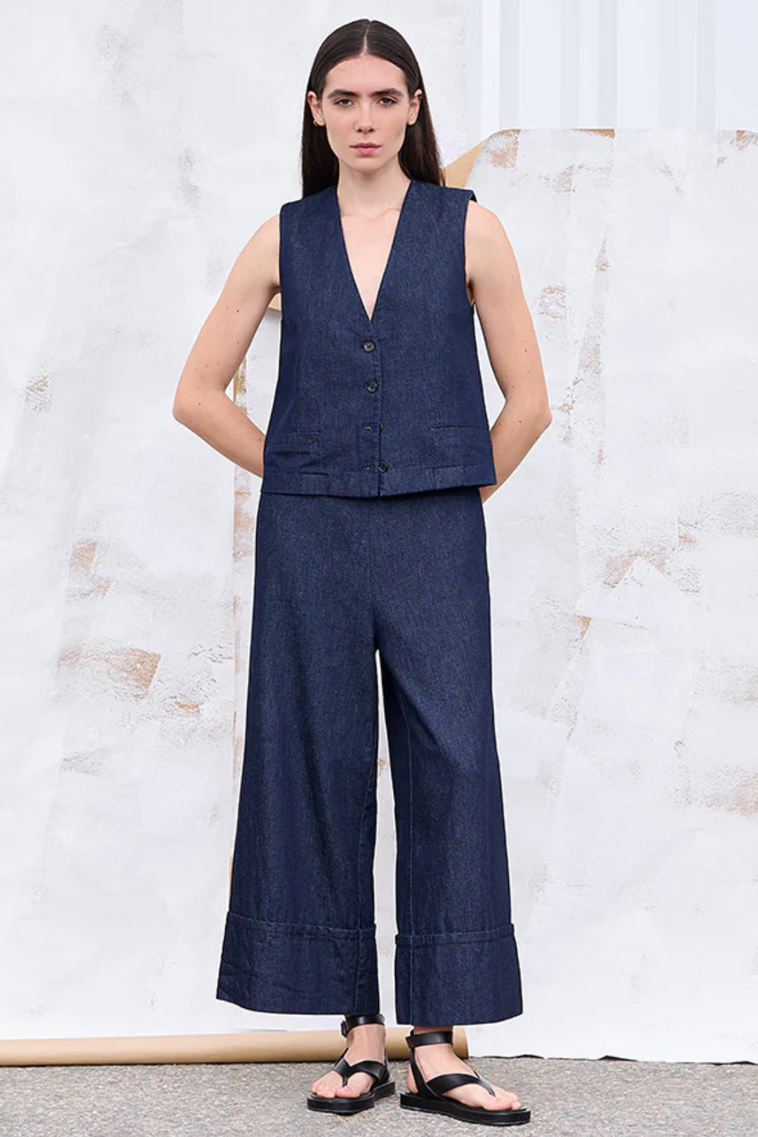 Humility Ladies Button Fastening Beja Denim Blue Waistcoat