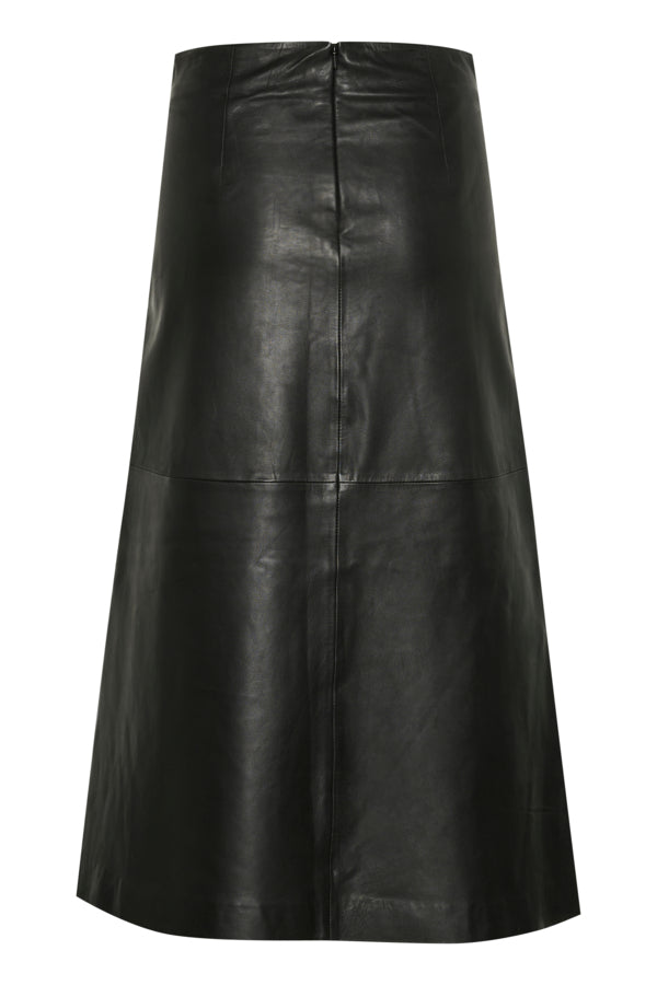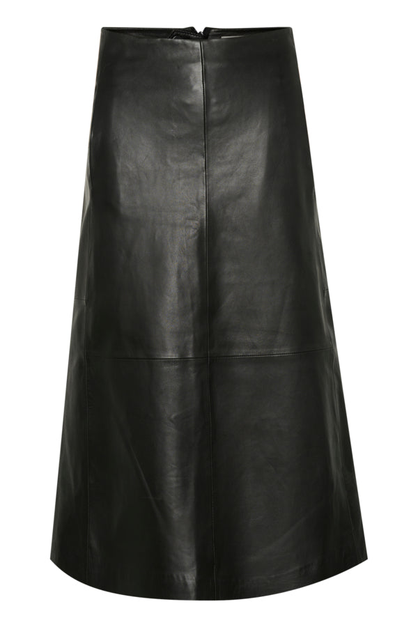 Super soft black leather A-Line midi skirt. Perfectly paired this A/W season with chunky knits and long boots.
