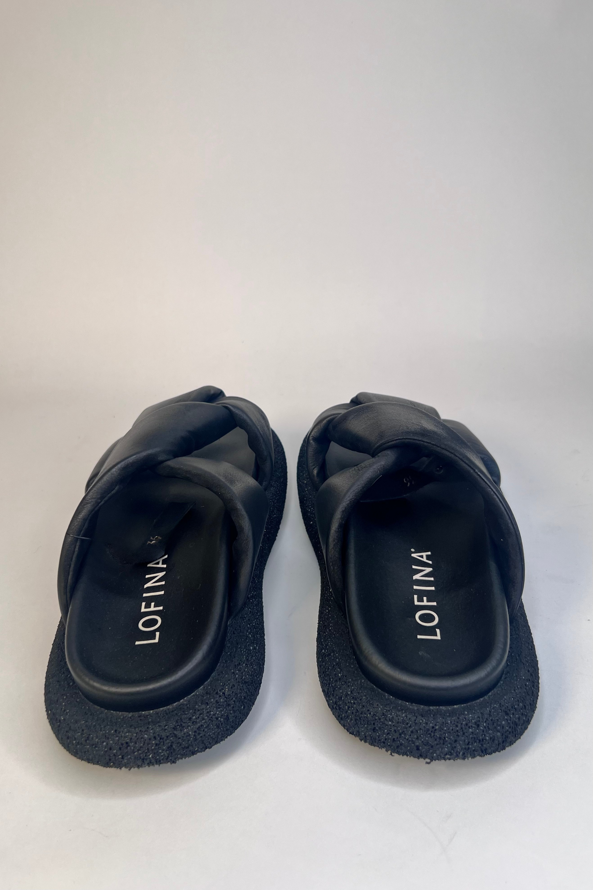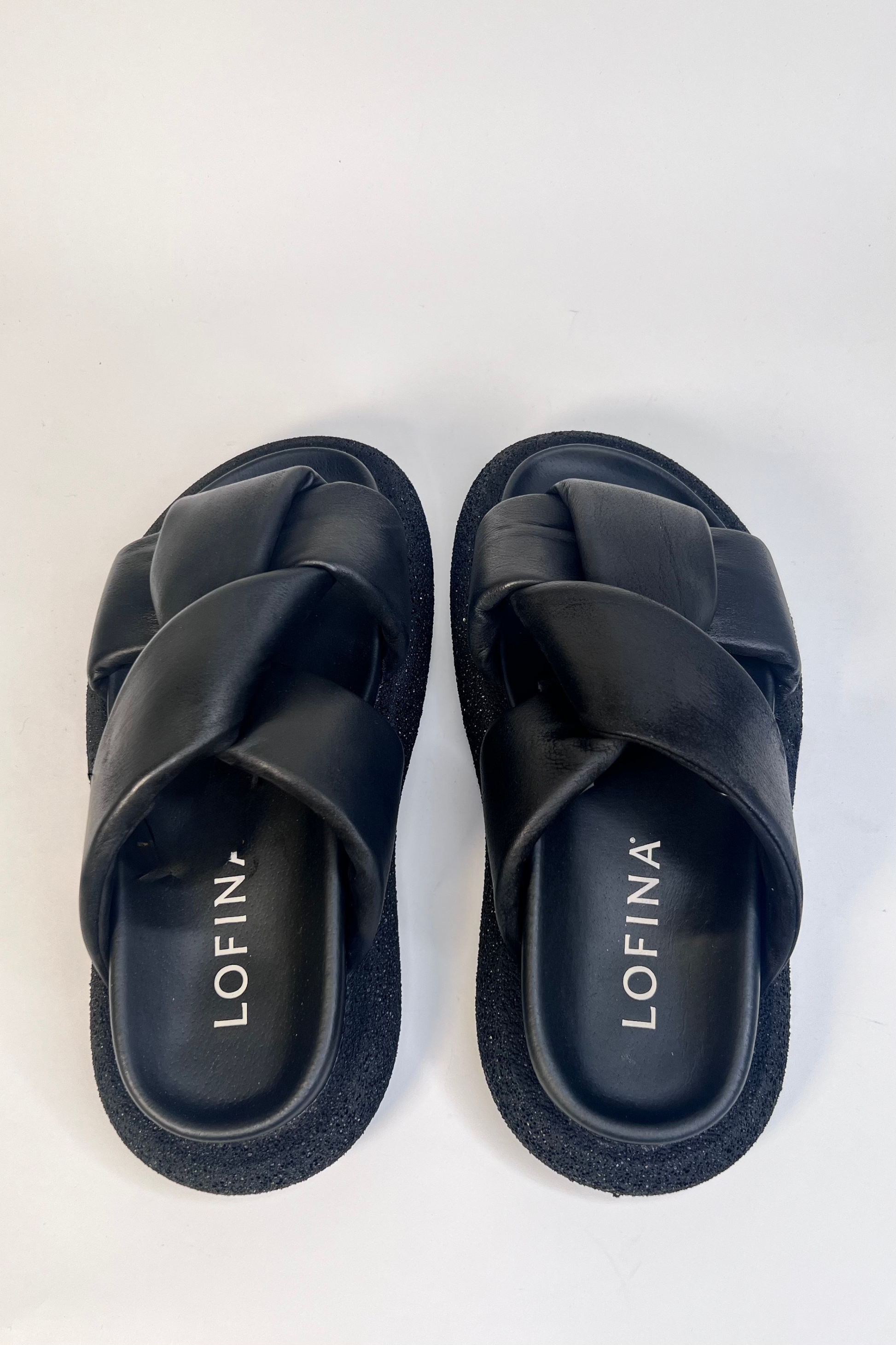 Lofina Ladies Simple and Super Elegant Gasoline Nero Twist Sandals