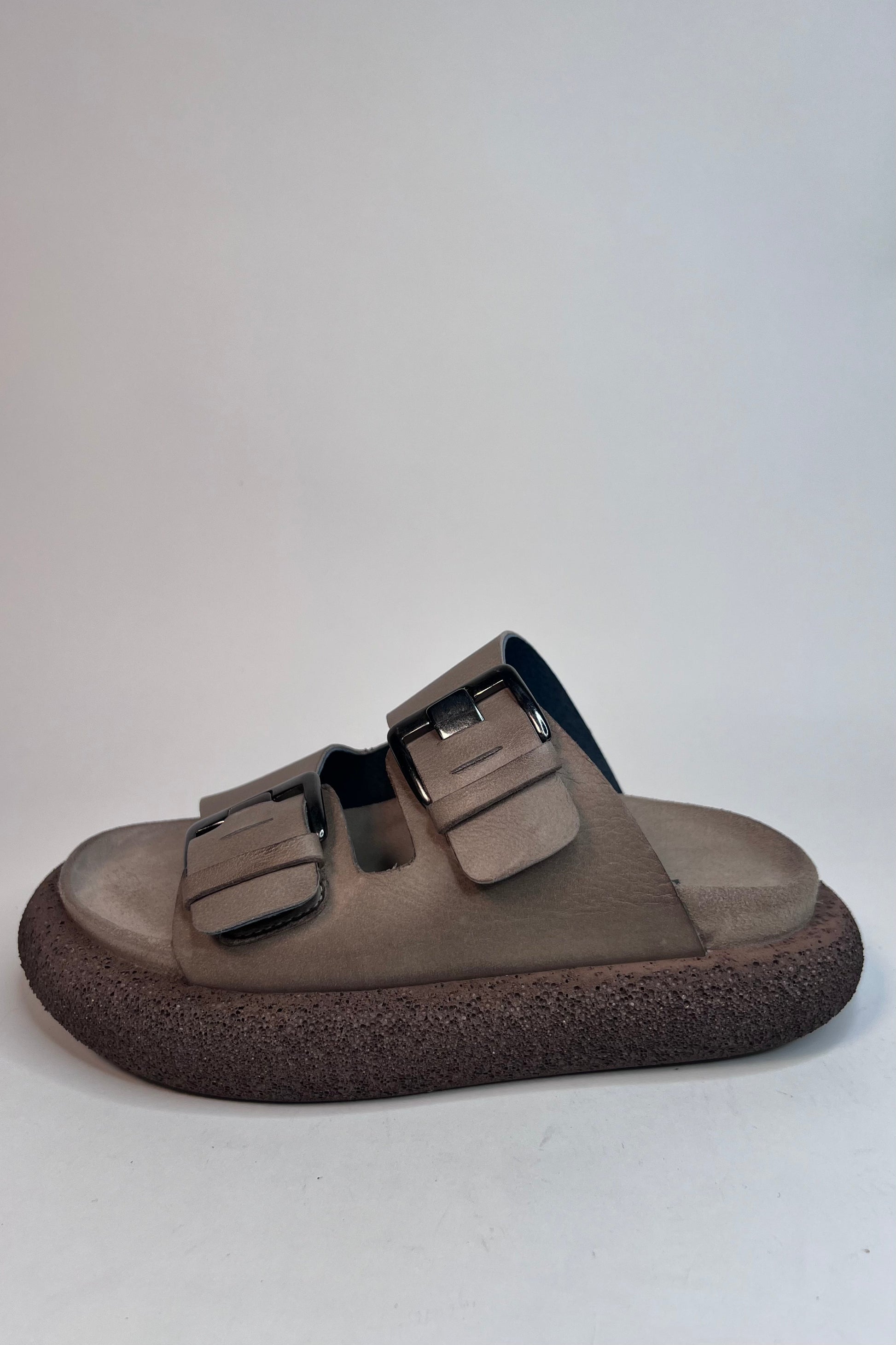Sandal with two adjustable buckles, making it easy to adjust to your foot for an optimal fit. The model has a rounded sole that is firm yet surprisingly lightweight.