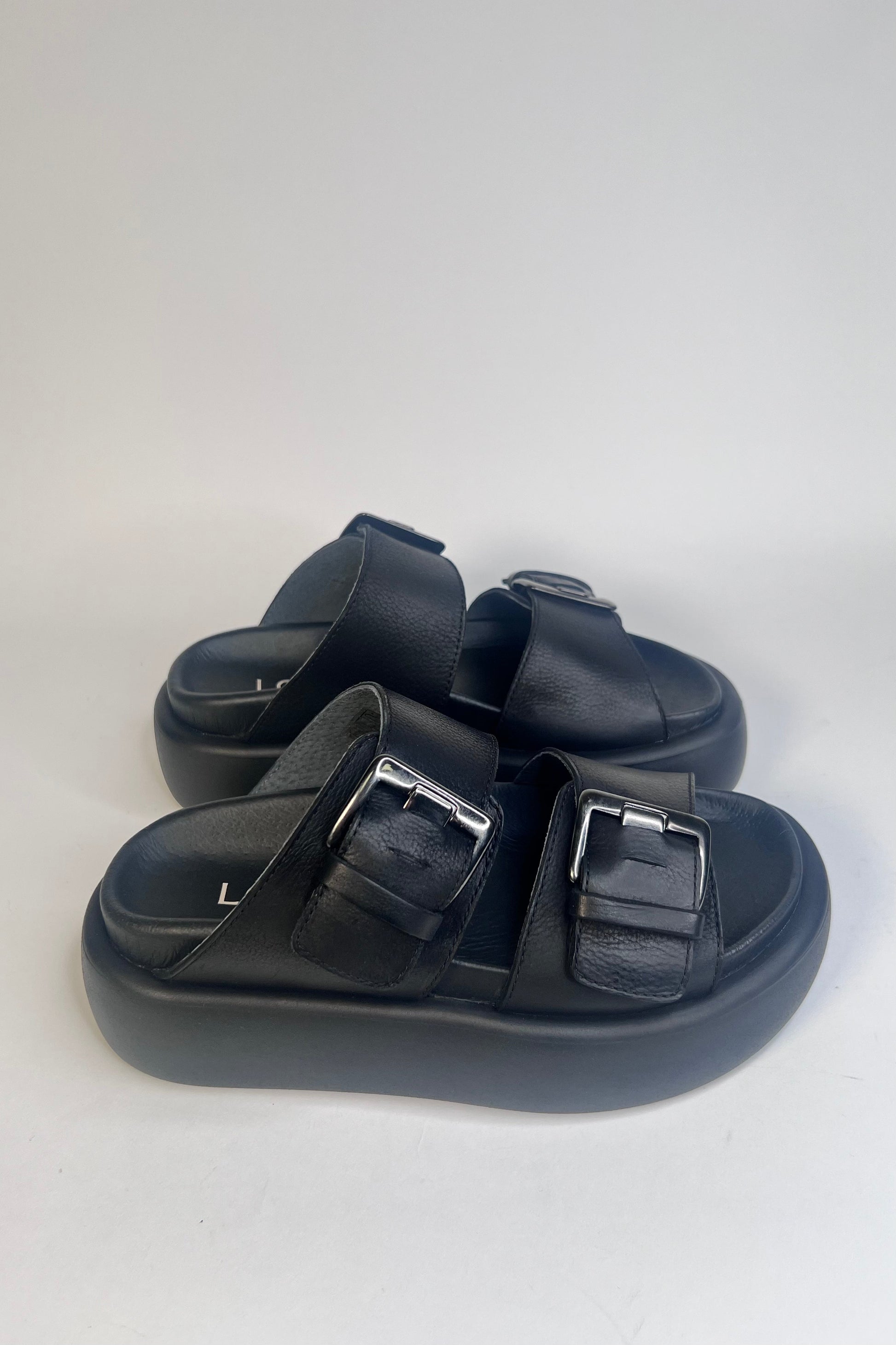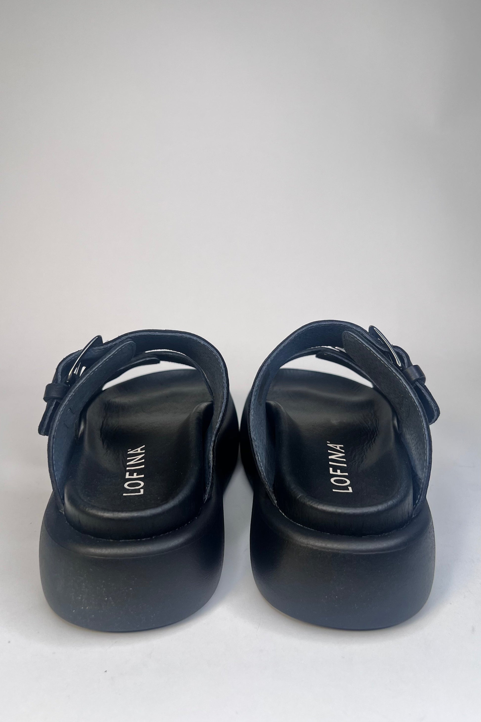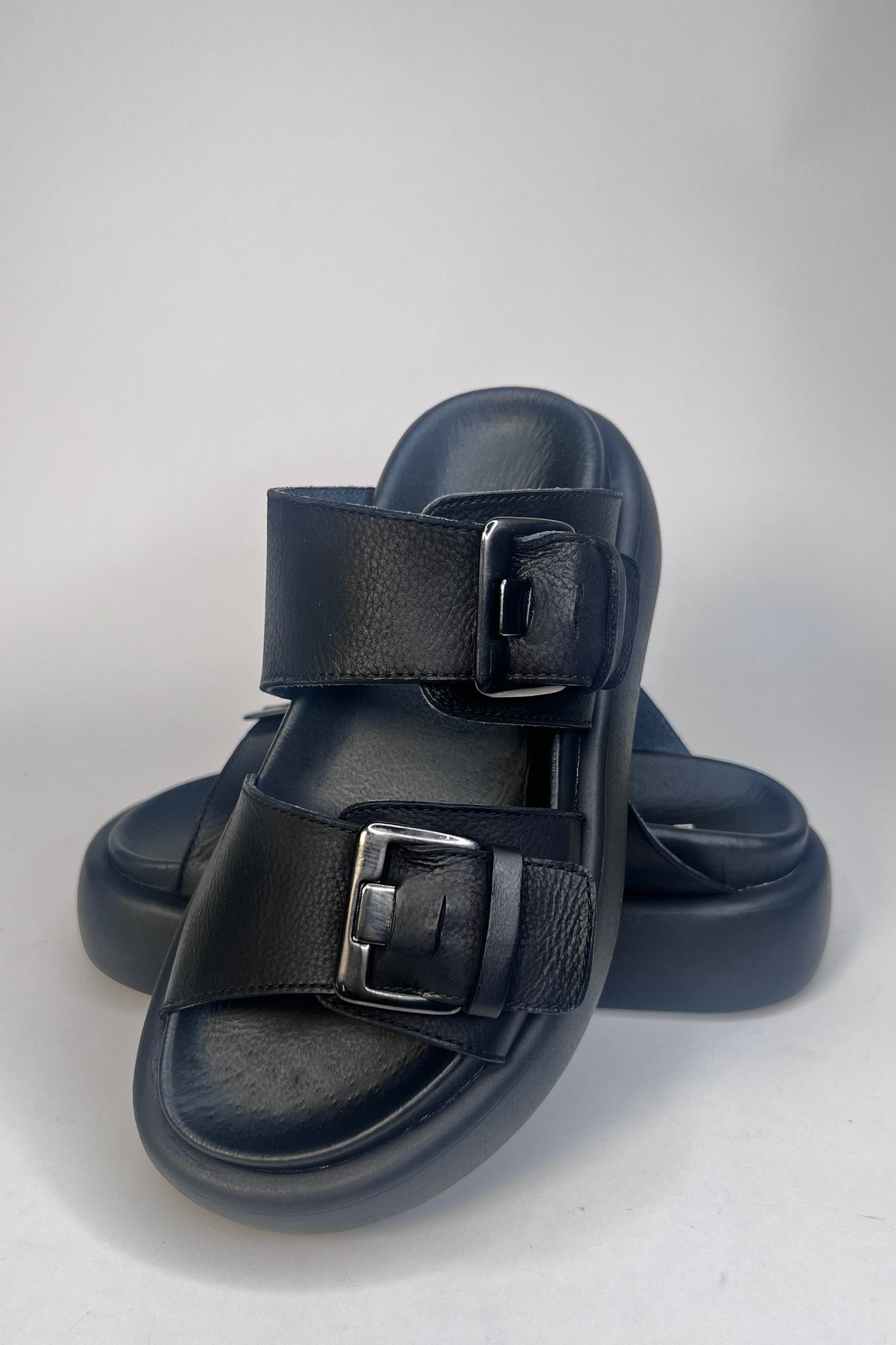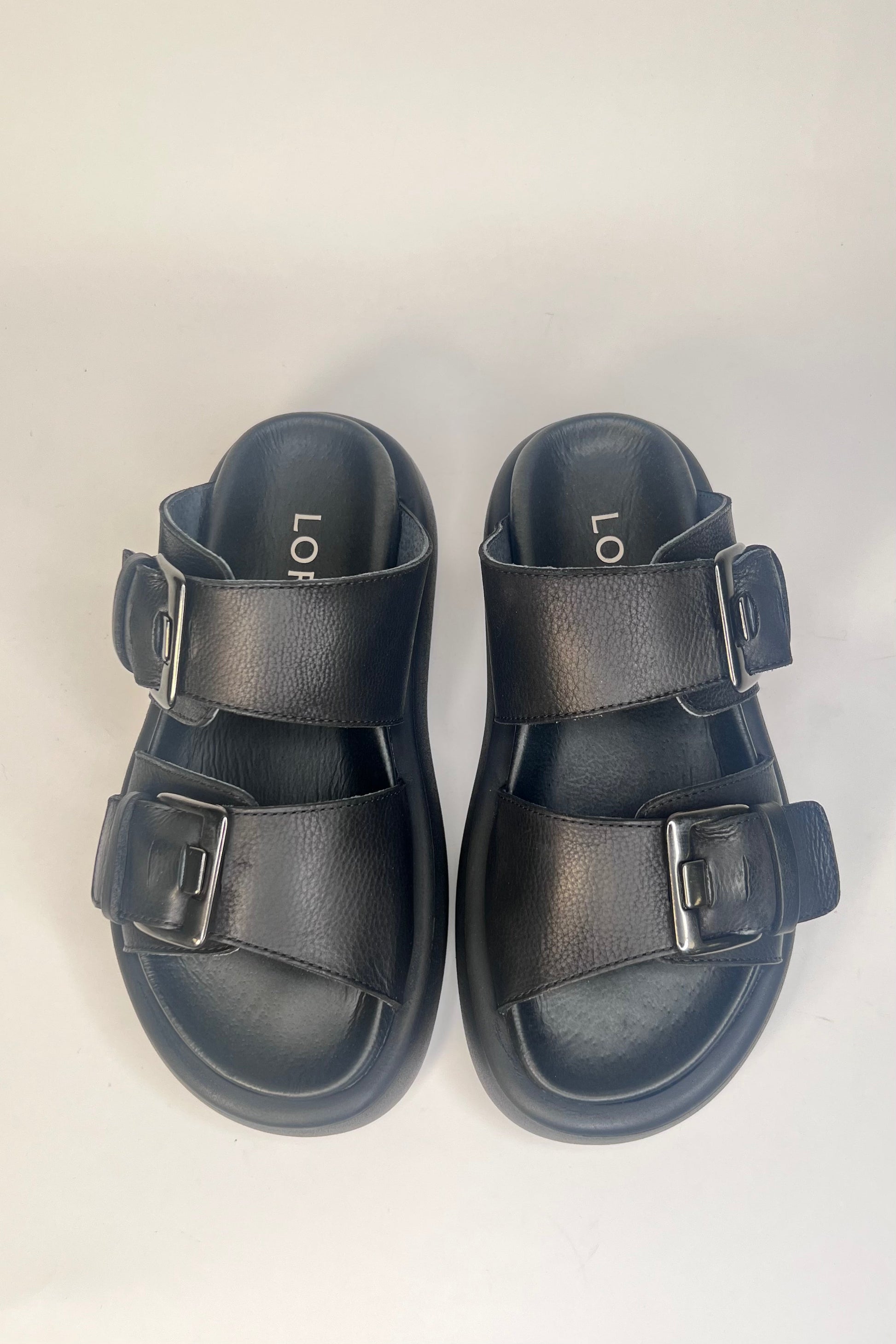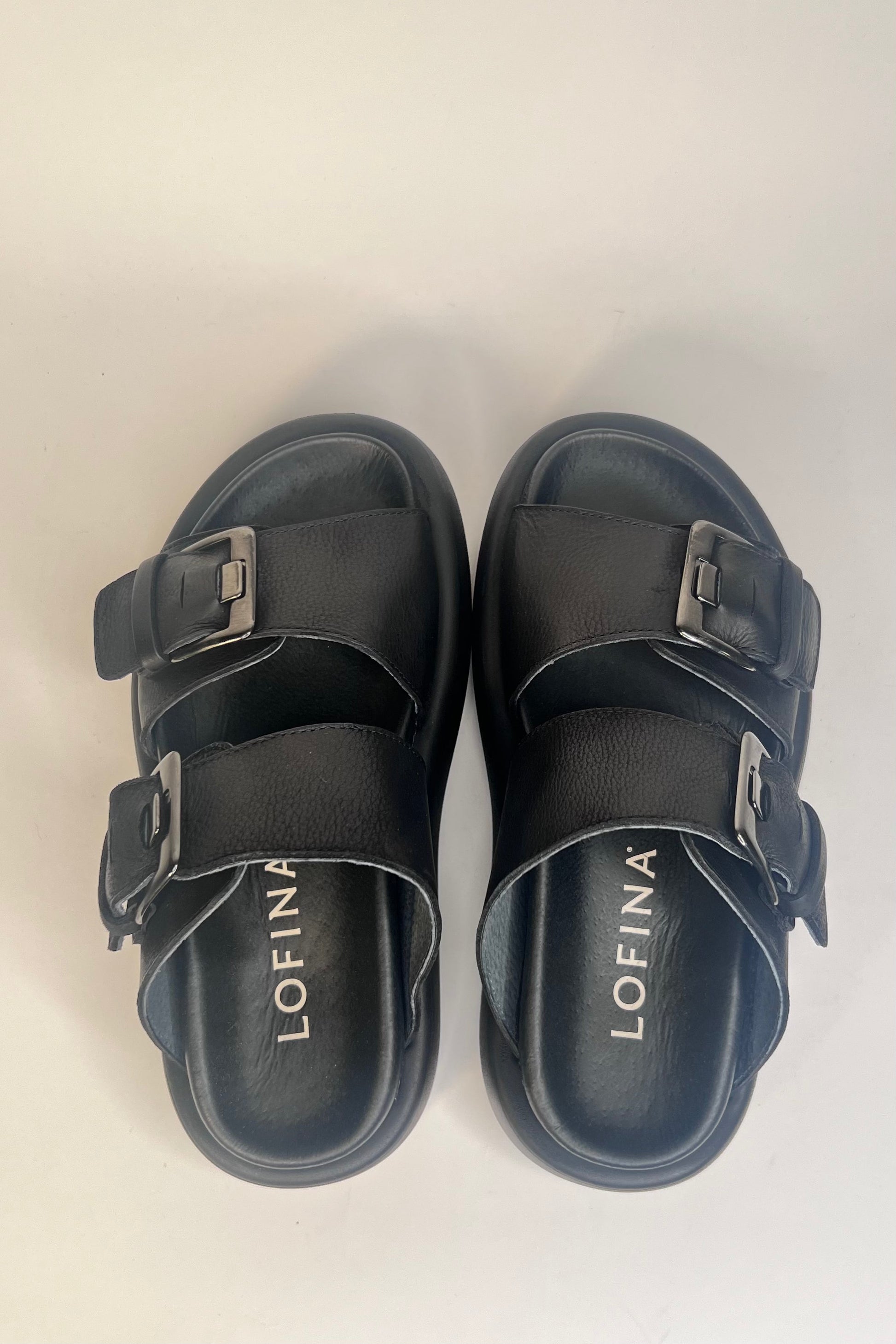 Lofina Ladies Two Adjustable Straps Gasoline Nero Buckle Sandals